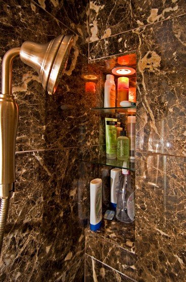 Стеклянные полки хороши для хранения украшений, которые легкие по весу.