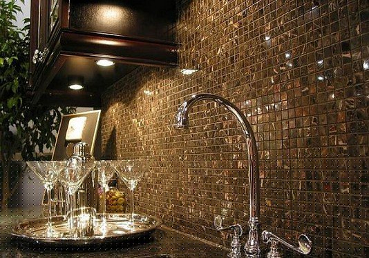 Если выбор столешницы это просто и ясно, то вариант с дизайном кухонного фартука позволит проявить фантазию, и пойти дальше с чем-то гораздо более смелым — таким например, как яркие разноцветные мозаики или ультра-гламурный дизайн — зеркало.