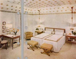 Зеркальные потолки спальни зрительно расширяют пространство и высоту помещения.