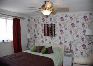 Более сложный дизайн потолков для спален — оклейка обоями.