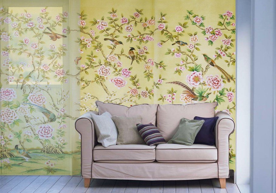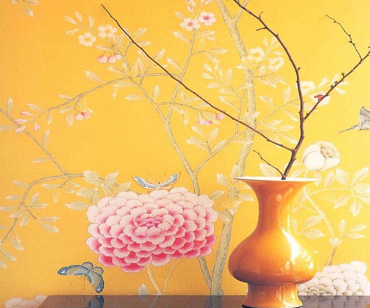 Ручная роспись, и шелковые китайские обои берут свое начало в 17 ~ 18-го веке,и разработана европейскими дизайнерами обоев, включив элементы китайского искусства от китайских художников, которая является хорошим примером сочетания китайских и западных искусств.