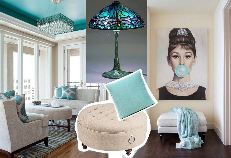 Интерьер, оформленный в стиле Тиффани, основан на сочетании фирменного бирюзового, нью-йоркского «гламура» и акцентов art noveau. Декор должен быть шикарным и со вкусом, передавая атмосферу большого мегаполиса.