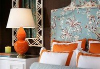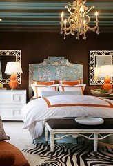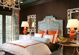 В бирюзовой спальне много цветов, и один из них оранжевый , который никак нельзя назвать расслабляющим цветом, когда он используется один.