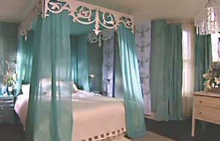 Кровать, конечно,является основным предметом мебели в бирюзовой спальне, она просто огромная и уютная.