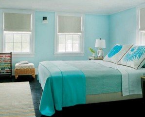 И конечно , как всегда разнообразные варианты интерьера бирюзовой спальни.