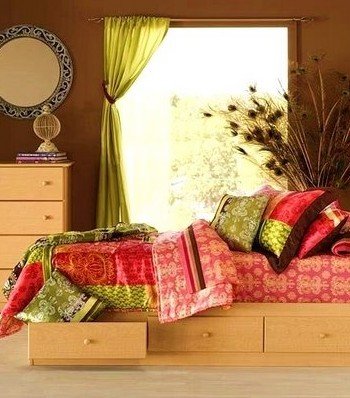 Для создания индийского стиля большую роль играет и подбор цвета и рисунка.