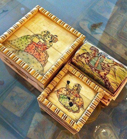 Деревянные коробки или другие предметы сделанные из кости, мебель или ткань украшенные крошечными зеркалами также типичны из различных индийских регионов.