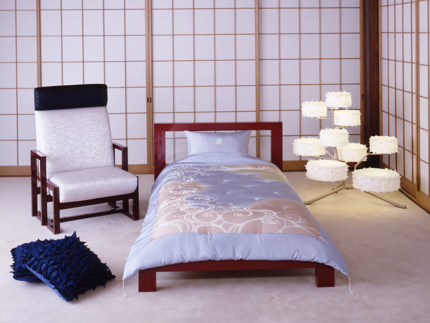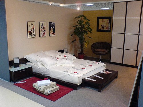 Только при выборе тканей они отдают предпочтение шелку. Большинство японцев любят шелк, и раз решили создать японский дизайн спальни,то стоит придерживаться их привычек.