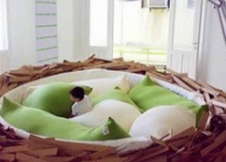 Эта интересную кровать похожая на Гигантское птичье гнездо возможно будет очень удобной для детей.