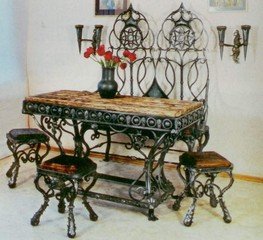 Кованые вещи мне очень нравятся, на фотках классный столик и стулья красивые. Под кованые вещи и стиль соответствующий надо, да и пространство тоже.