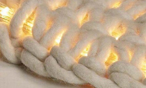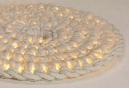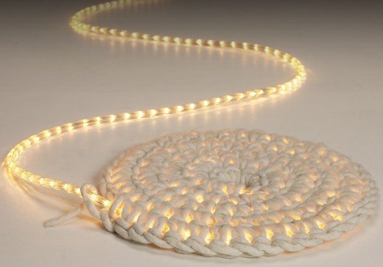 Ковер с подсветкой сочетает в себе тонкую веревку и длинную тонкую люминесцентную нить внутри этой веревки.