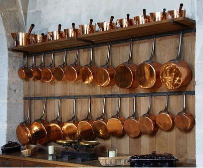 Вещи,которые занимают много пространства на кухне, это все виды горшков, кастрюль,миски и сковороды.