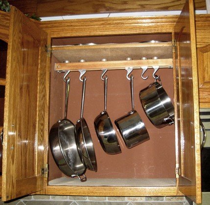 Конечно это не единственный вариант устройства места для хранения кастрюль, здесь все зависит о фантазии.