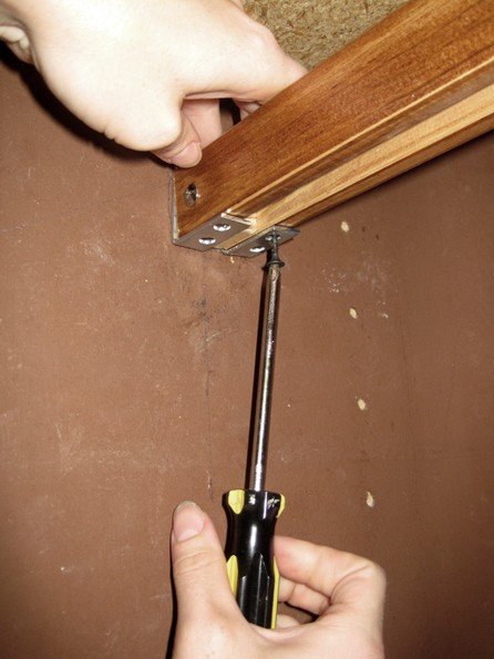После того как L-кронштейны на месте можно прикрепить деревянную стойку.