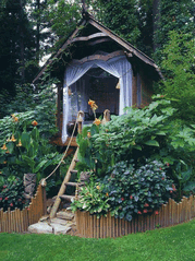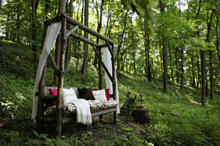 А как дети любят такие уголки отдыха в саду, они ведь могут быть самыми разнообразными, от простого гамака под деревом, до изысканной беседки.